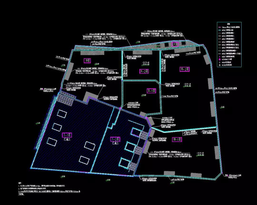 由于緊鄰地鐵,按照地鐵指揮部的要求,基坑需要分成5個大區,10個小區開挖,逐區施工,每個分區必須待結構施工到±0.00并驗收后,方可開始施工下一分區,嚴重影響工程進度,工期非常緊張,按照正常的施工工藝和流程基本難以完成。
