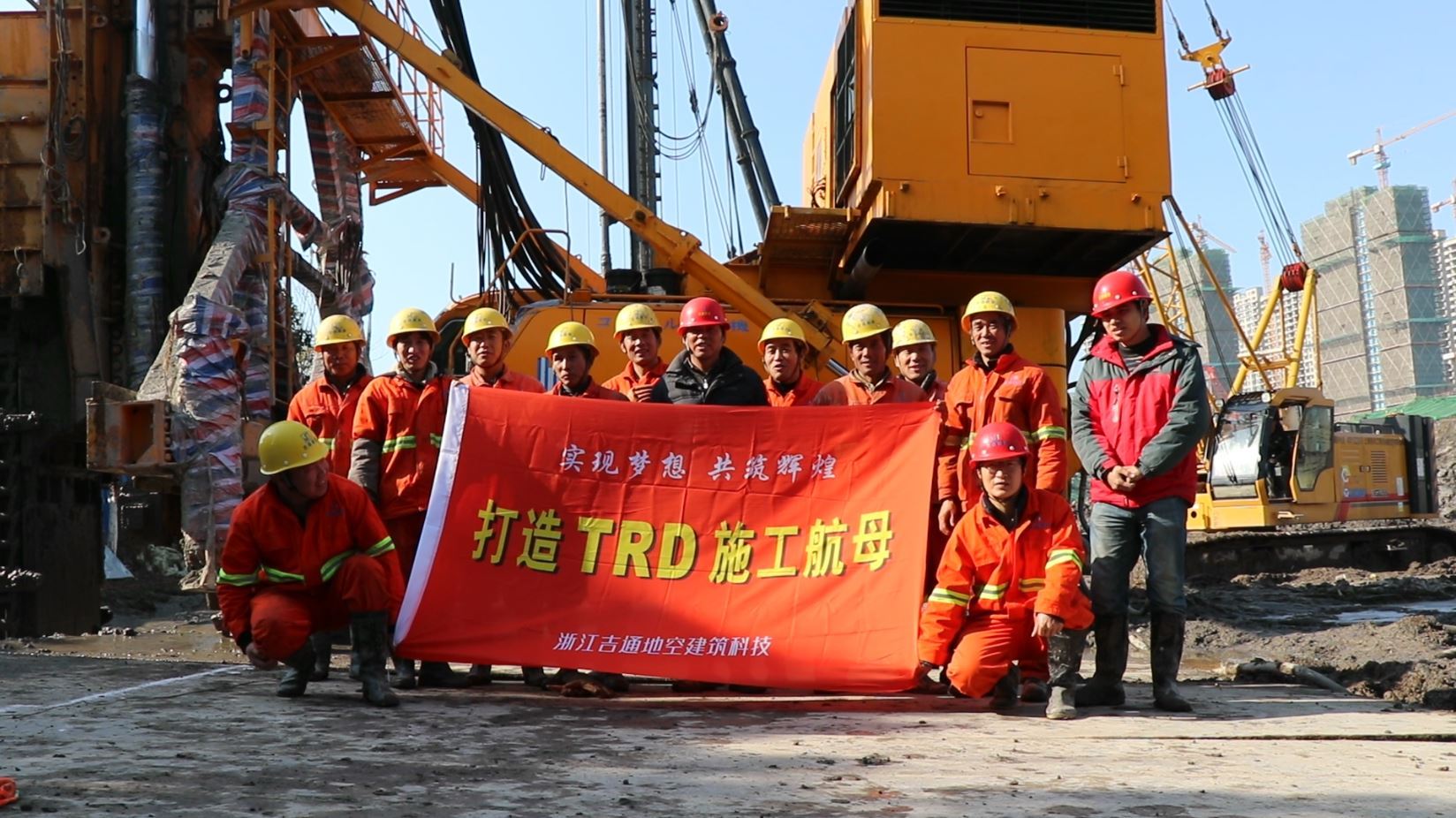 本項目地質條件非常復雜,施工難度極大,地下-56至-58米是鵝卵石層、-58至-60米左右是強風化層、-60米以下是中風化層,項目設計TRD水泥土攪拌墻施工深度為61.5米。這是迄今為止TRD工法施工史上少有的高難度項目。