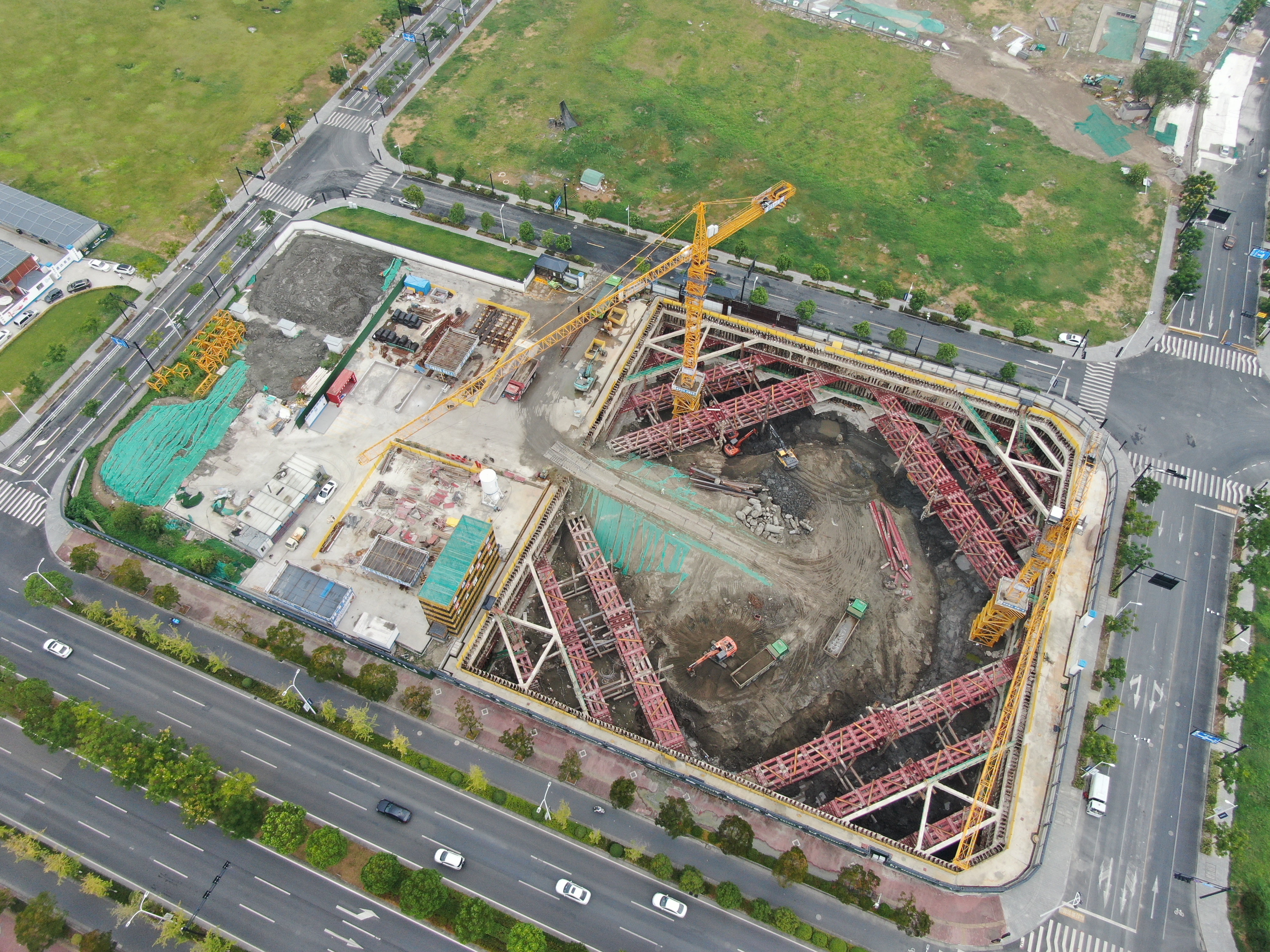 虹軟項(xiàng)目開(kāi)挖深度較大,可達(dá)16.3m,采用了3道型鋼組合支撐作為支撐體系;所有鋼構(gòu)件均在工廠定制,采用伺服系統(tǒng)進(jìn)行軸力自動(dòng)補(bǔ)償,支撐分組安裝,預(yù)應(yīng)力分級(jí)施加,施工過(guò)程中結(jié)合監(jiān)測(cè)和巡查結(jié)果進(jìn)行信息化施工。目前已經(jīng)開(kāi)挖到底,基坑整體情況良好,基坑變形及支撐內(nèi)力均處于設(shè)計(jì)要求范圍內(nèi)。