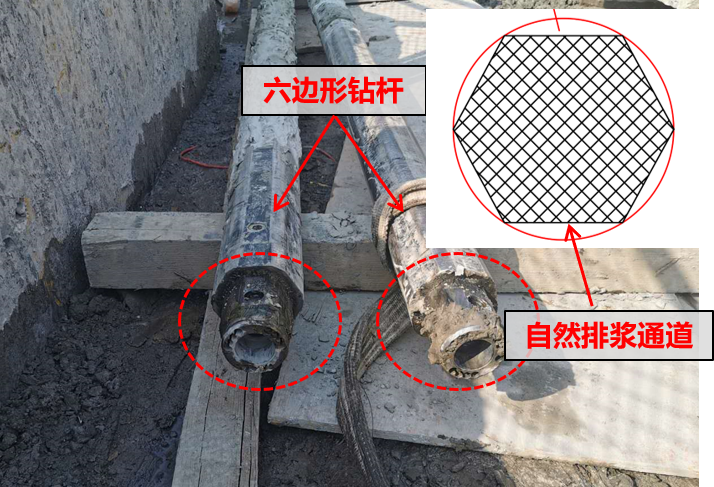 IMS鉆機鉆桿為六邊形構造,在攪動時與孔壁間存在空隙,可作為自然排氣通道,降低地內應力,從而減小擾動。注漿壓力小,只有1MPa,且無需空氣壓力輔助。