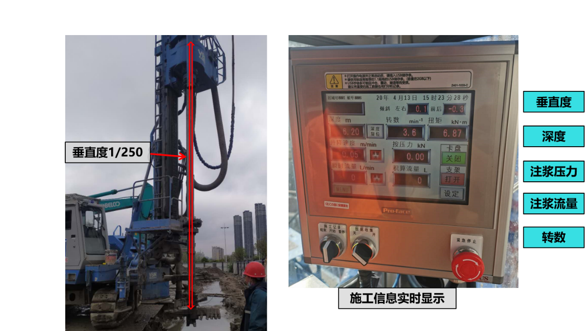 IMS工法可以做到高精度、高質量的施工,操作室內可以實時監控鉆桿垂直度、深度、轉數等數據情況。