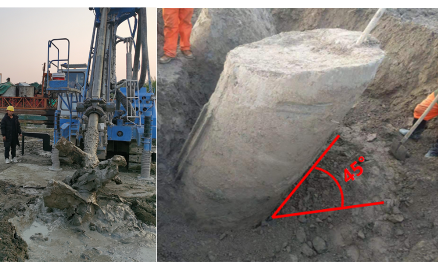 IMS工法樁機還可以進行斜樁施工,鉆桿與地面的夾角最小可以做到35度。