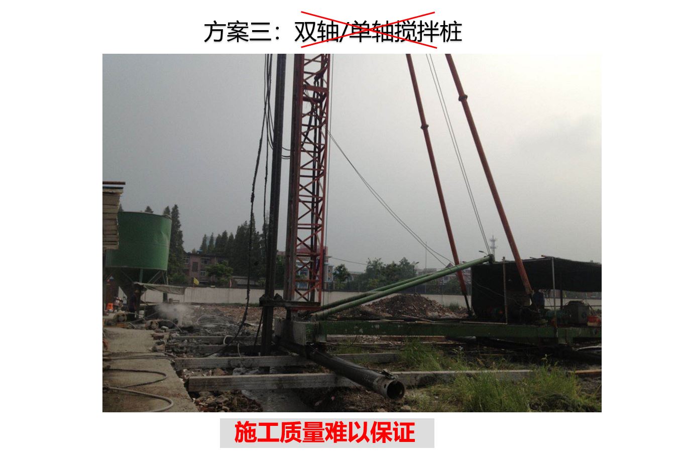 對于單軸或者雙軸水泥攪拌樁呢,大家又擔心施工質(zhì)量難以控制,所以也沒有采用。