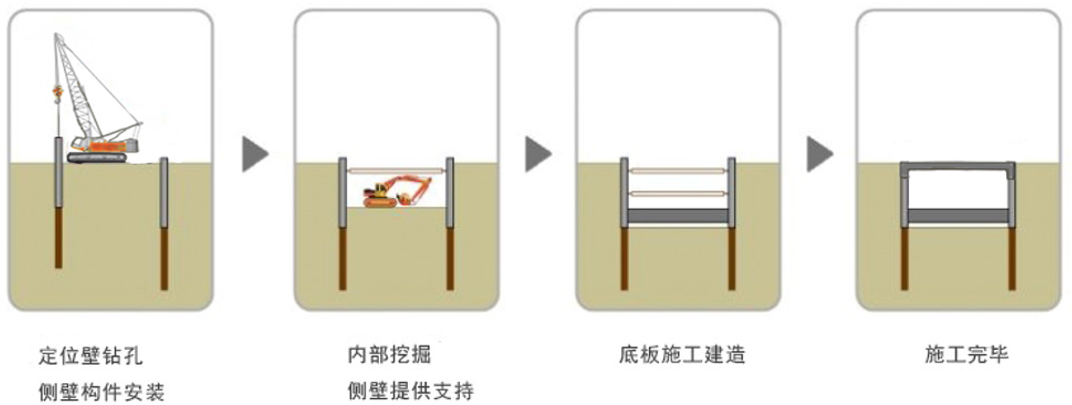 根據本工程現場情況,結合工期要求考慮,選用適宜本工程圍護結構特點的TAD工法進行施工。