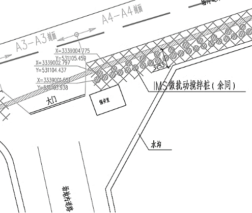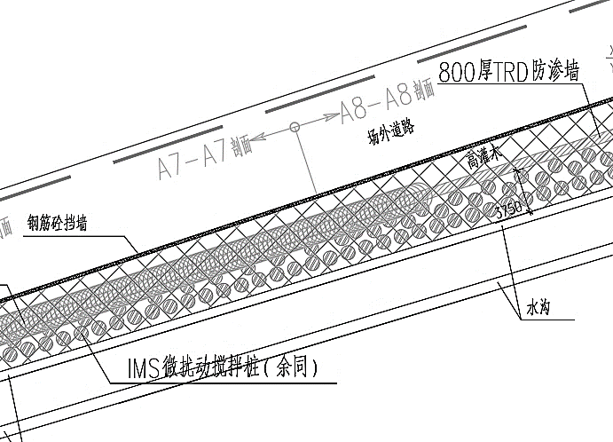 項目北側東段現狀行車道路與填埋場間存在一定的落差,落差為0.5m-2.7m,原先設置了鋼筋砼擋墻進行支擋;由于落差較大,考慮到TRD機械直接進行施工,會有傾覆的風險;且本項目對TRD施工質量要求高,直接進行施工不利于控制水泥土連續墻的施工質量。故在該區域,先采用IMS工法樁進行了復合地基加固后,再進行TRD施工。