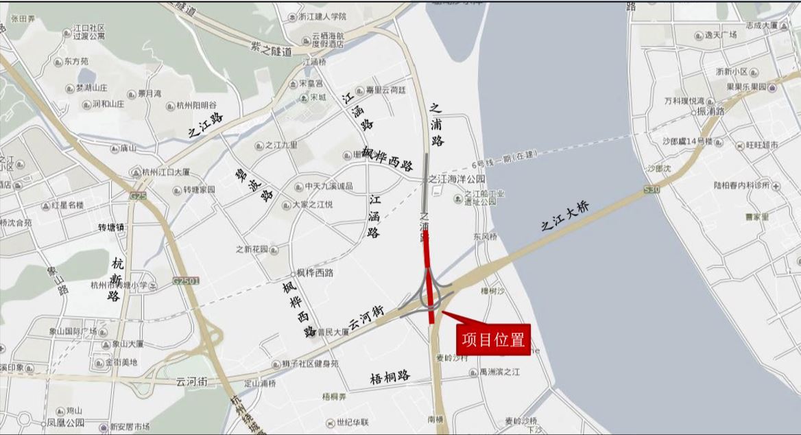 北起之江路/之浦路交叉口,南至杭州南收費站,設計線路全長約3.18公里,為城市主干道(按快速路標準設 計),包括之浦路上跨楓樺路橋梁、麥嶺沙立交定向匝