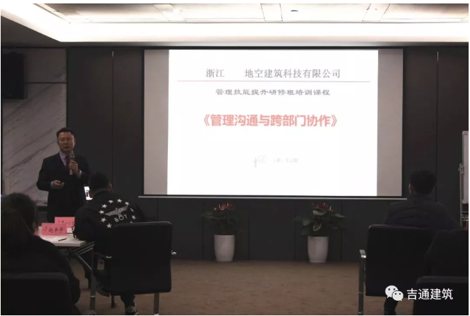 2018年12月29日浙江吉通地空建筑科技有限公司管理技能提升研修班課程在華鐵創業大廈如期舉行。本次課程由清華大學、北京大學等名校總裁班客座教授艾志朋主講,課程圍繞著“管理者對溝通的認知”、“TA溝通風格測評與分析”、“管理溝通技巧實戰演練”、“溝通沖突解決”等內容展開。