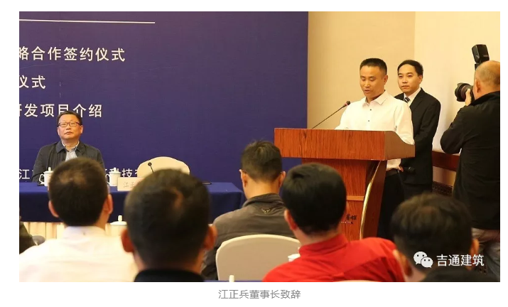 吉通建筑研發中心簽約及授牌后、浙江吉通地空建筑科技有限公司董事長江正兵攜吉通相關高層領導分別與建華建材(中國)有限公司、上海工程機械廠有限公司分別簽訂了戰略合作協議。各項戰略協議的簽訂,旨在推動行業技術發展,并與協作企業建立起長久的合作關系,保持戰略伙伴相互之間高度信任,研究出更符合我們國內施工工法和引進更先進的施工設備,提升各方更大的市場競爭優勢,實現協同聯動發展。